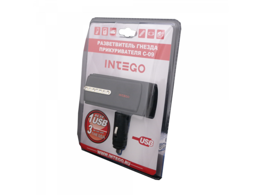 Разветвитель гнезда прикуривателя (12/24 В) на 3 входа с максимальным суммарным током нагрузки 10 А + зарядное устройство с 1 USB входом (5 V / 1000 mA).