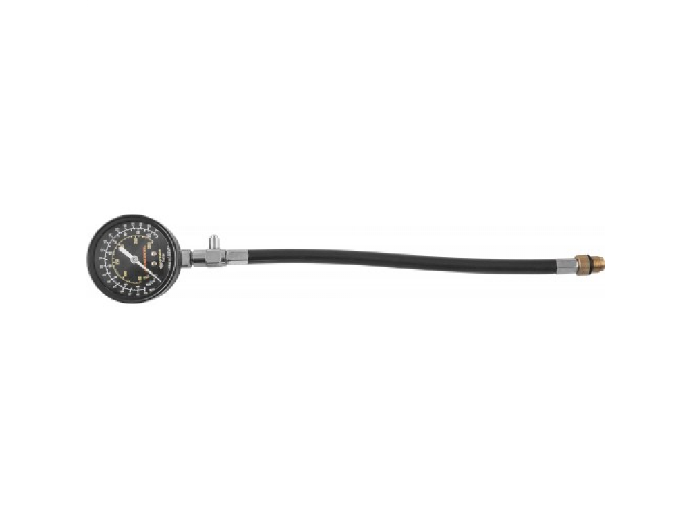 Прибор для диагностики работоспособности и обнаружения неисправностей цилиндро-поршневой группы и газораспределительного механизма бензиновых двигателей внутреннего сгорания. Изделие комплектуется 64-миллиметровым манометром, имеющем шкалы градуировки до 21 кгс/смкв. в различных величинах: psi, Bar, кгс/смкв., двумя резьбовыми адаптерами для свечных отверстий М14 и М18, гибким шлангом, длиной 325 мм, что позволяет использовать прибор для диагностики двигателей с осложненным доступом к свечным отверстиям.