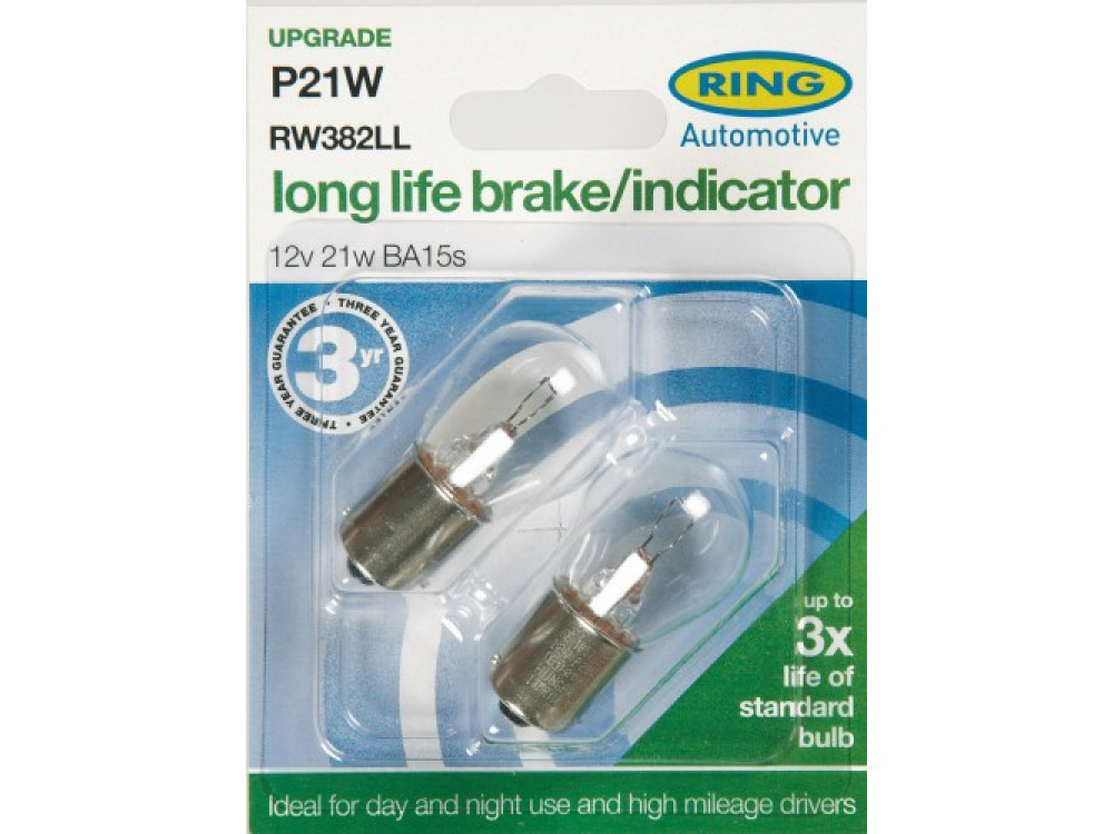 Автолампа с гарантией 2 года в пластиковой упаковке (по 2 шт): 12 вольт, мощность 21W, цоколь P21W (BA15s)