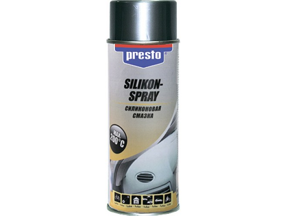 PRESTO Смазка силиконовая предназначена для синтетических поверхностей. Используется для смазки и защиты пластиковых и резиновых изделий от растрескивания. В зимний период предотвращает прилипание и примерзание уплотнителей автомобиля. Бесцветная, водостойкая, не содержит токсичных ингредиентов. Используется при температурах от -50°С до +200°С.