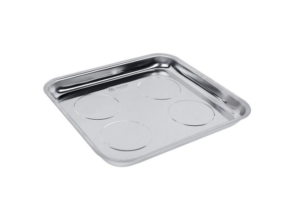 Поддон магнитный, 294х273 мм, МАСТАК 194-00127 применяется для сбора мелкого крепежа и деталей при ремонтных работах, а также для хранения. При помощи 4-х мощных магнитов поддон надёжно устанавливается на любую железную поверхность под любым углом, в зависимости от места ремонта. Особенности - Размер поддона: 294 х 273 х 30 мм - Материал поддона: нержавеющая сталь - Количество магнитов: 4 шт - Материал защиты магнитов: резиновый кожух
